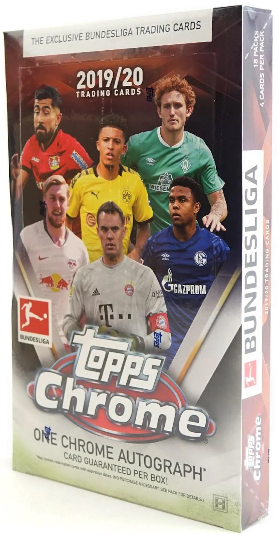 Topps in partnership with Bundesliga returns in 2020! To showcase this partnership, Topps will feature the greatest stars of Bundesliga on Topps Chrome technology! Look for 1 autograph per box on average. Chase rookie cards and autographs of Erling Haaland! 18 packs per box. 4 cards per pack.
