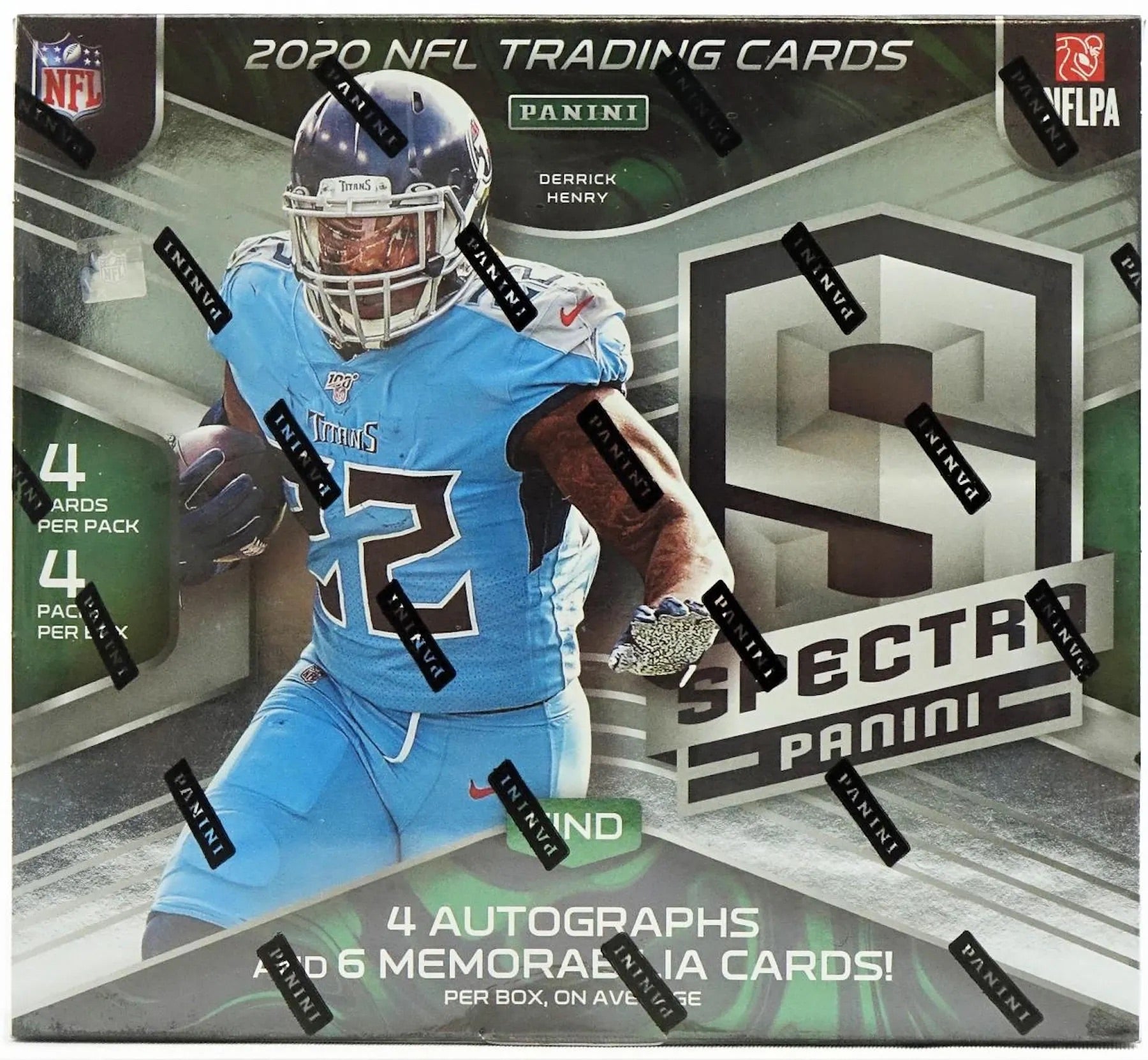 Back for 2020, Spectra Football includes 1 Rookie Patch Autograph, 3 Additional Autographs, 6 Memorabilia Cards and 5 base/parallels per box on average. Look for on-card autographs with Champion Signatures, Illustrious Legends, Sky High Signatures, Vested Veterans Autographs, Tribute Autographs. 4 cards per pack. 4 packs per box. Look for 1 rookie patch autograph, 3 additional autographs, 6 memorabilia, 5 base/parallels and 1 insert cards per box on average.