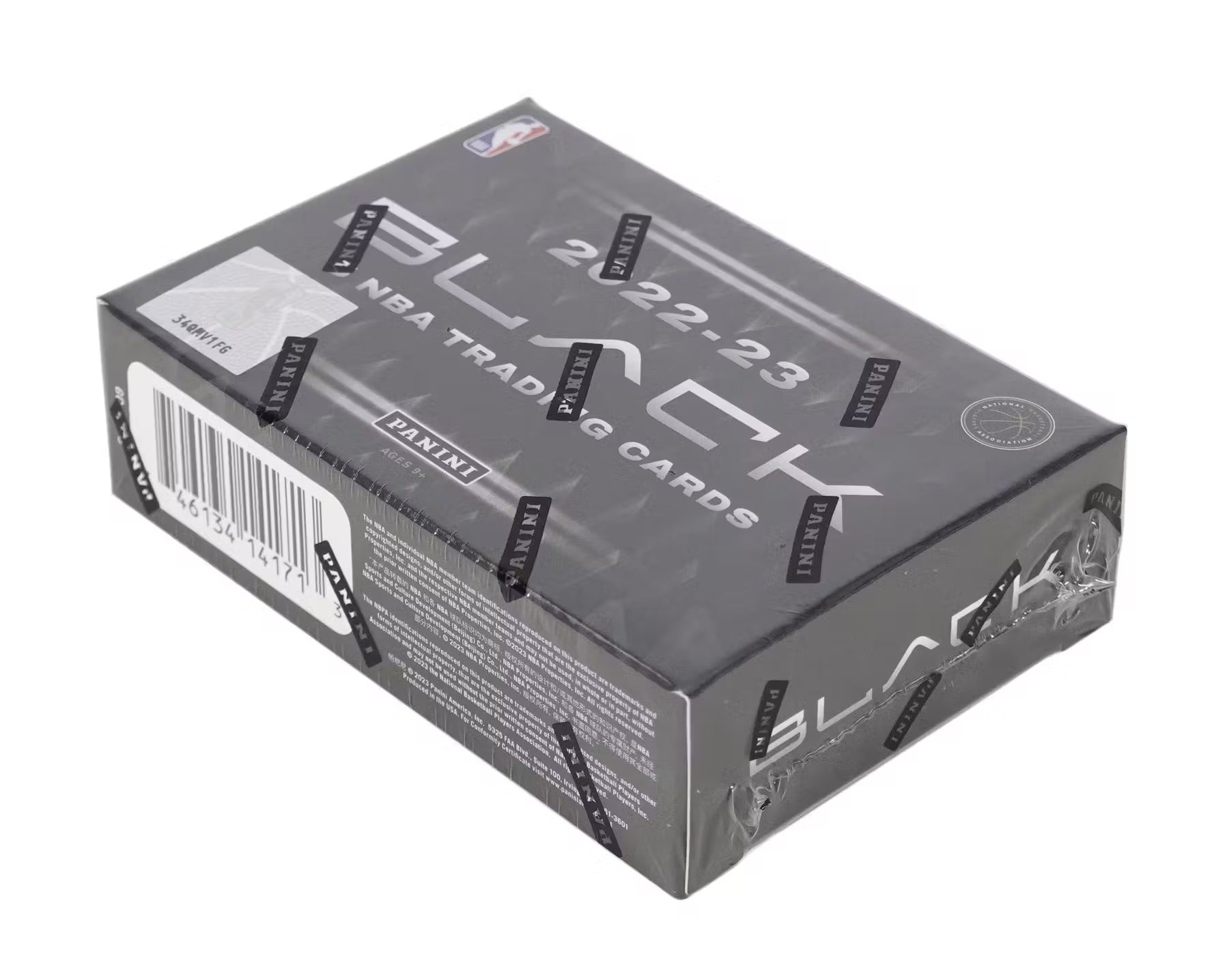Keeping the same basic selection as recent years, 2022-23 Panini Black Basketball offers a base set with veterans and rookies. Collect Rookie Memorabilia Autographs and Rookie Jumbo Memorabilia Autographs! Find 1 autograph and 2 base parallels per box on average!1 Pack Per Box, 5 cards per pack.