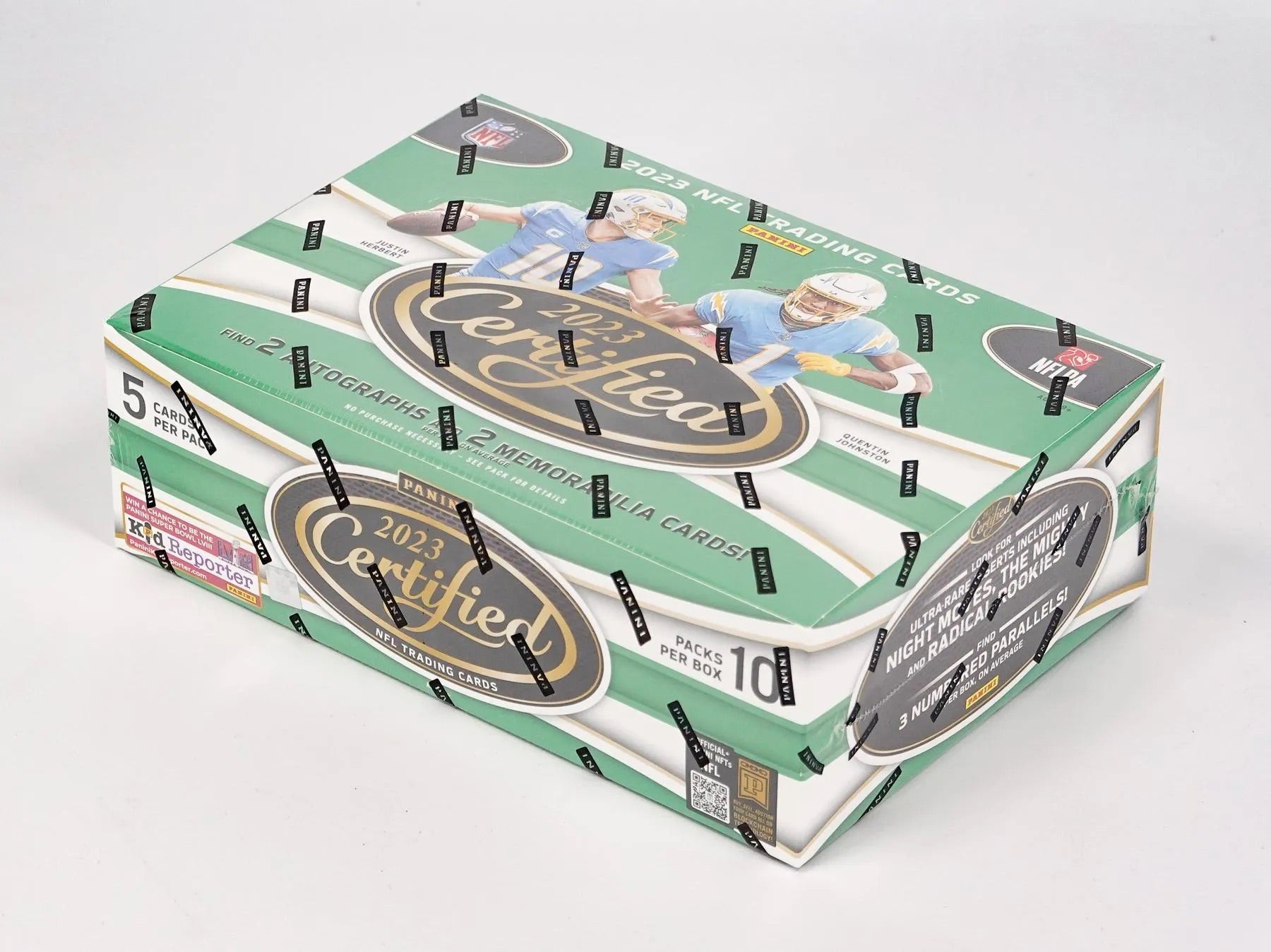 Look for new inserts added to this years Certified! Search for the newly included super short print Night Moves parallel! Huck it, Chuck it also makes its debut, with a checklist featuring top quarterbacks SLINGIN’ the ole Pigskin! Returning to this year’s Certified are some classic autograph checklists such as Fabric of the Game and Freshman Fabric Signatures. Look for these randomly inserted cards, numbered as low as 1! Each 2023 Certified Hobby box includes 4 autograph or memorabilia cards per box on average. Look for Rookie autographs from players such as Bijan Robinson, Zay Flowers and Anthony Richardson! Find 2 autographs, 2 memorabilia cards, 10 inserts, 2 rookies, and 3 numbered parallels per box, on average. 5 cards per pack.