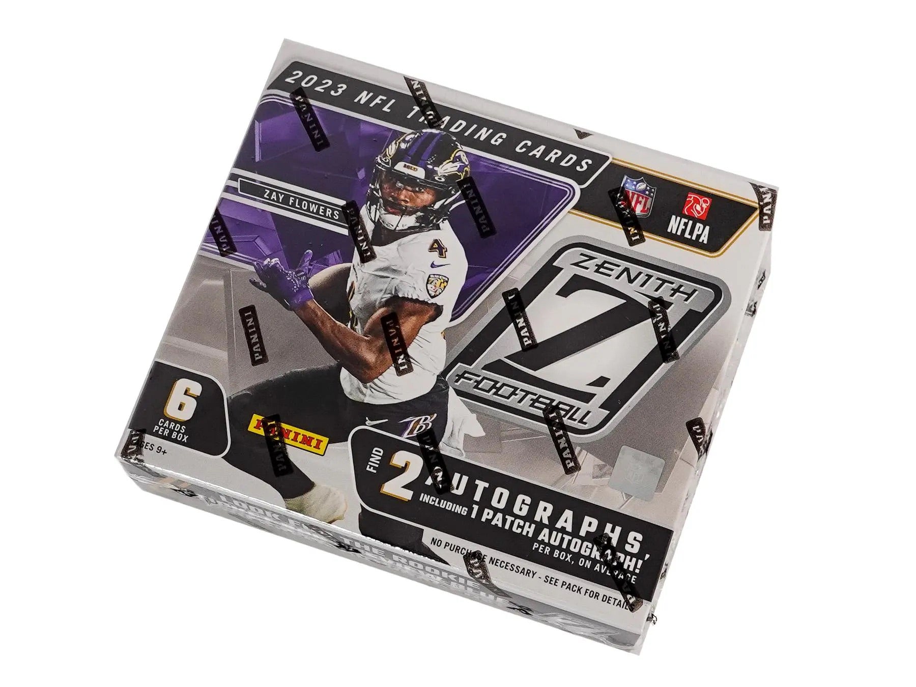The unique Zenith Football franchise returns for 2023 with a dinstinctly “Zenith” look and feel featuring the brand’s popular designs and inserts that have collectors covered from A to Z. Find chase-worthy RPAs featuring autographs and either one, two, three, four or five pieces of memorabilia numbered from 299 all the way down to 1! Look for a zesty array of inserts that is undeniably “Zenith,” including the fabled Z-Team as well as Z-Stars, Zeal of Approval and so much more. Look for 1 patch autograph, 1 additional autograph, 1 base card, 1 rookie card, and 2 inserts per box on average. 6 cards per pack. 1 pack per box.