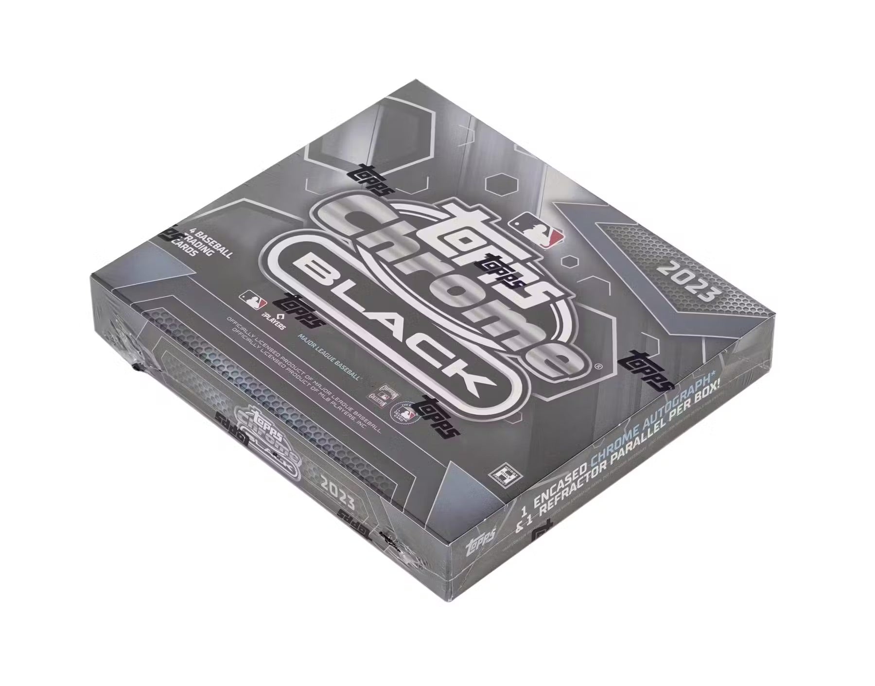 2023 Topps Chrome Black Baseball provides another premium breaking experience with another year of sharp Chrome Black tech on beautiful designs! Collect the entire 100-card Base Set and look out for Base Set Rookie Design Variations! 100 base cards showcasing a stellar mixture of rookies and superstars! Look for 1 2023 Topps Chrome Black Baseball encased autograph card, 1 Refractor Parallel, and 2 Chrome Base Cards per box on average! 4 cards per box.