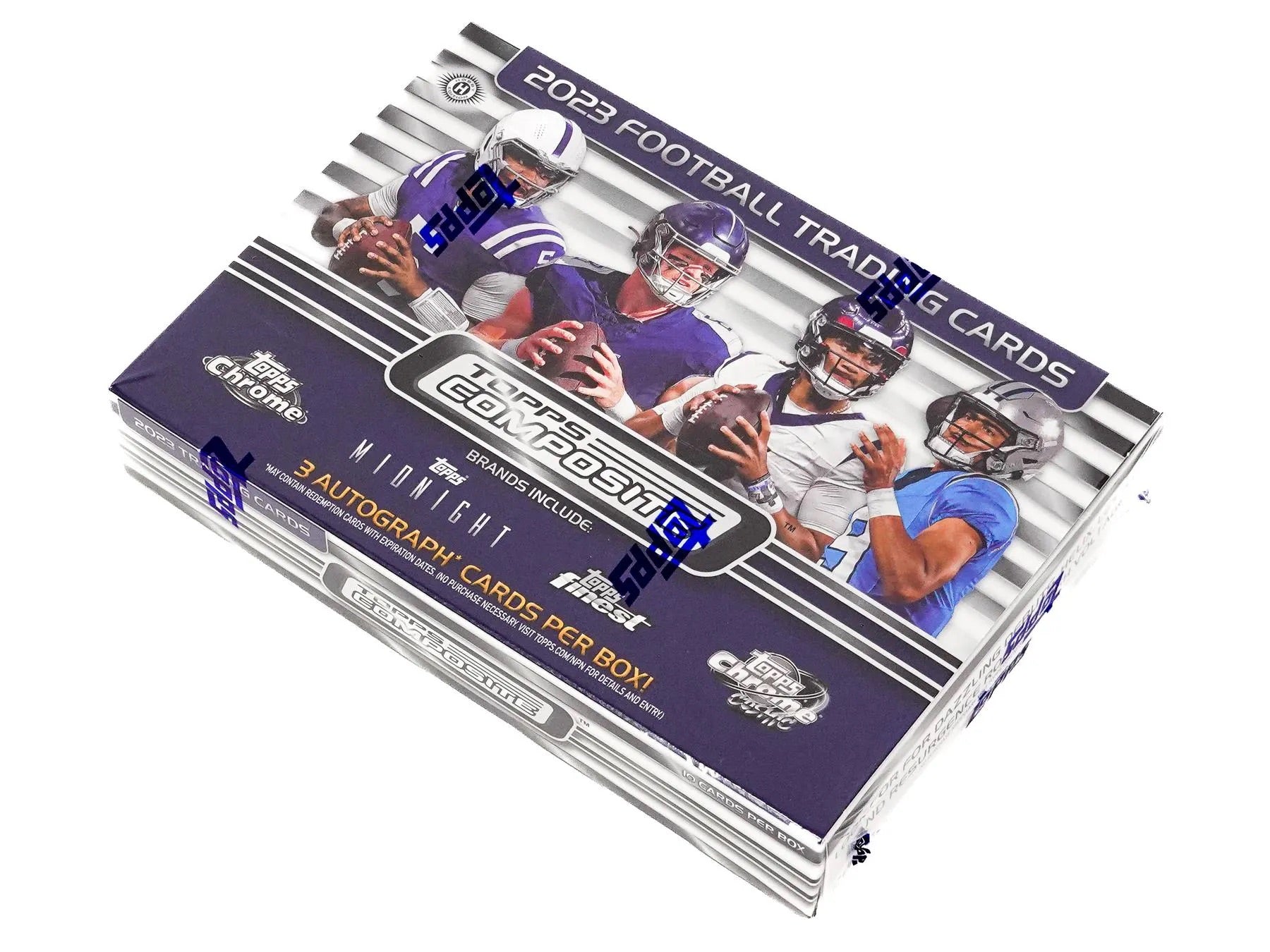 2023 Topps Composite Football is debuting with a lineup of electric products, inserts and beautiful parallels! Find cards from some of the most popular brands in the Topps catalogue. Look for Topps Chrome, Chrome Black, Resurgence, Finest, Cosmic Chrome, Midnight, Allen & Ginter, Archives, Heritage, and more! Look for 3 autographs, 1 Base Card Refractor Parallel, 1 Exclusive Base Card Geometric Parallel, and 5 additional parallels per box on average. 10 cards per pack. 1 pack per box.