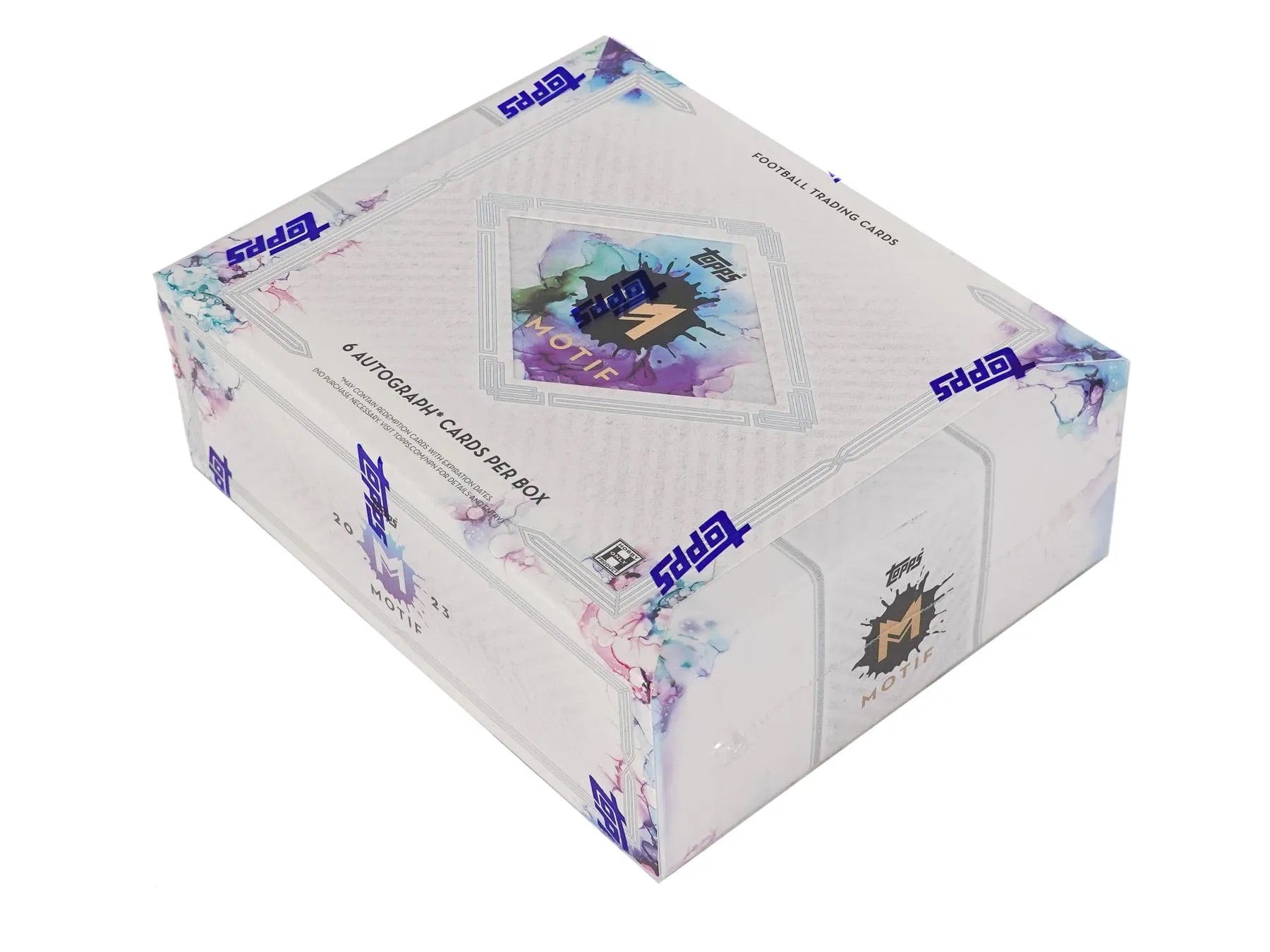 2023 Topps Motif Football A brand new program for the Topps catalog, Motif will feature a high-class art style theme across all designs in the product. Introducing completely new designs and themes for all autographs and autograph relic sets. Each box is loaded with 6 on-card autographs from top rookie quarterbacks and football legends! Look for 6 autograph cards, 1 base card, and 1 base card parallel per box on average. 8 cards per pack. 1 pack per box.
