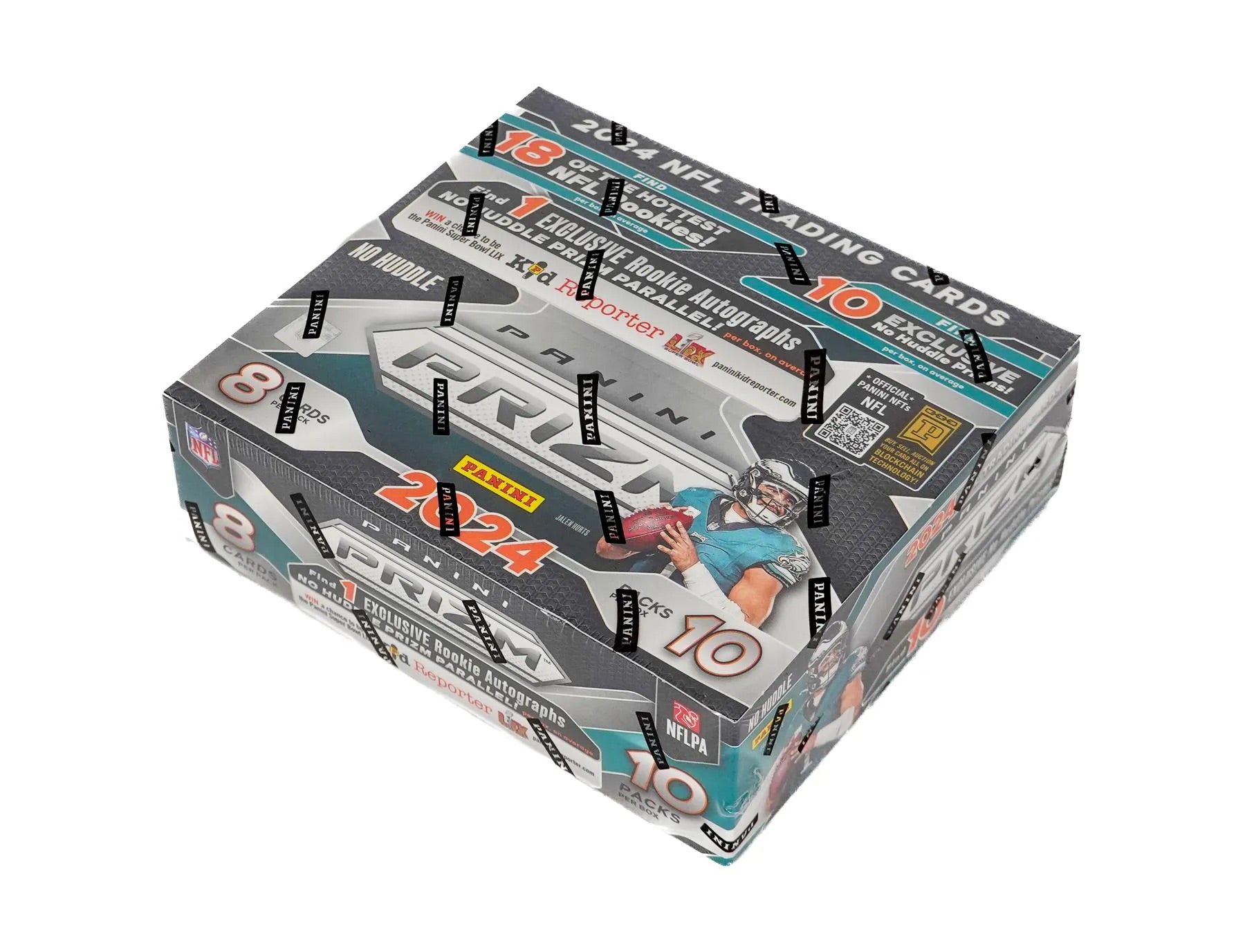 One of the most-beloved brands in trading card history returns for the 2024 season featuring top rookies and stars — Prizm Football! Look for No Huddle Exclusive Blue, Red, Purple, Pink, and Neon Green Prizm Parallels! Look for 1 No Huddle Prizm autograph, 10 No Huddle Prizms (4 Silver, 6 numbered), 18 rookies, and 7 No Huddle Prizm inserts per box on average. 8 cards per pack. 10 packs per box.