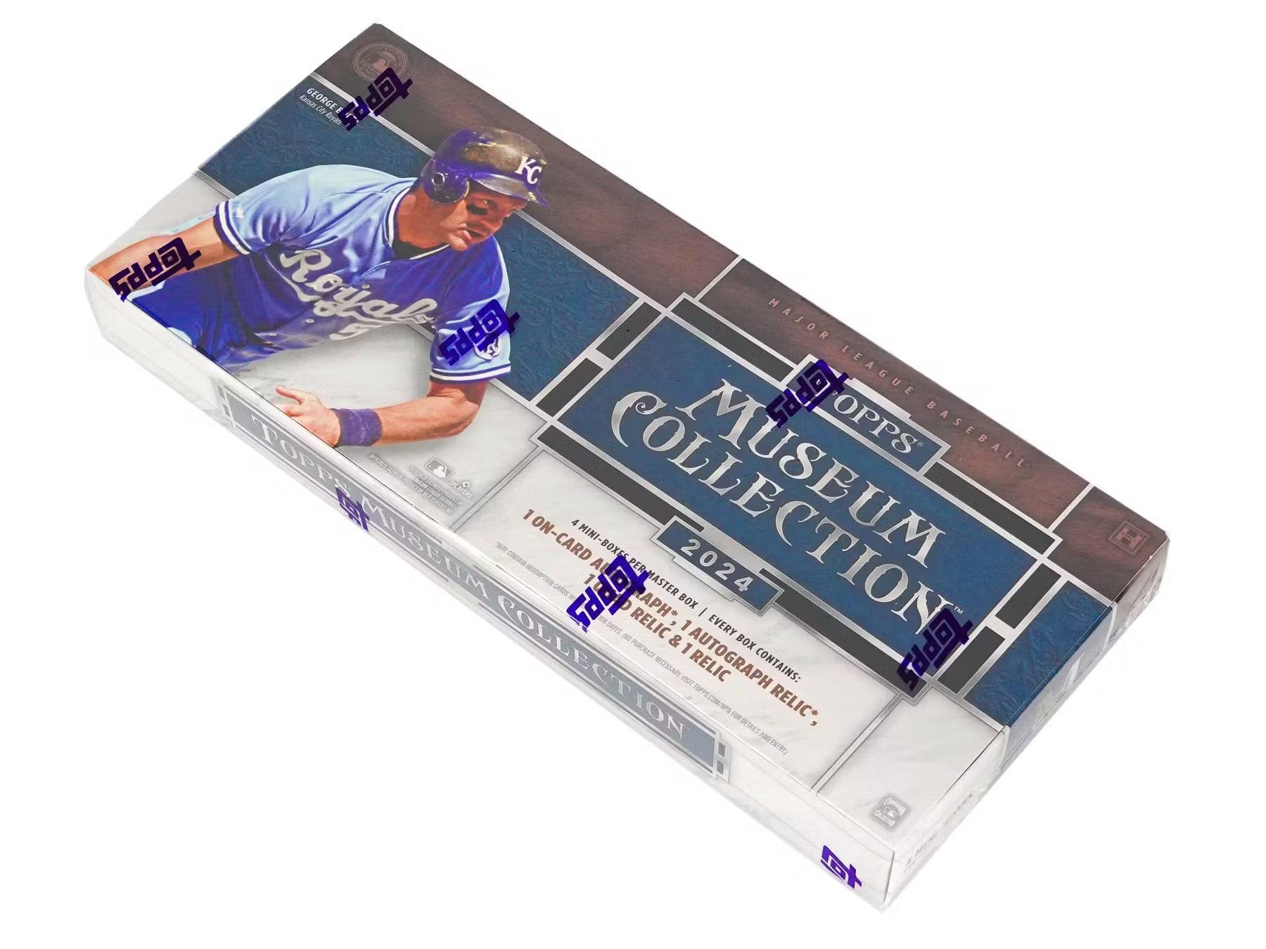 Museum Collection delivers 4-mini boxes each with 1 autograph or relic, 3 base cards and 1 base parallel. Look for new base parallels, new inserts, new metal frame color, new cut signatures, new autograph and relic parallels for 2024! Museum Collection also offers a redesign for 2024 that adds a new “Museum” look and feel! Museum Collection offers collectors a wide range of autograph cards on striking new designs! Look for the return of Archival Autographs, Museum Framed Autographs, Atelier Autographed Books, Momentous Material Jumbo Patch Autographs, Baseball Authenticated Autograph Relics and more! Look for 1 relic, 1 quad relic, 1 on-card autograph card, and 1 autograph relic per box on average! 5 cards per pack, 4 packs per box.