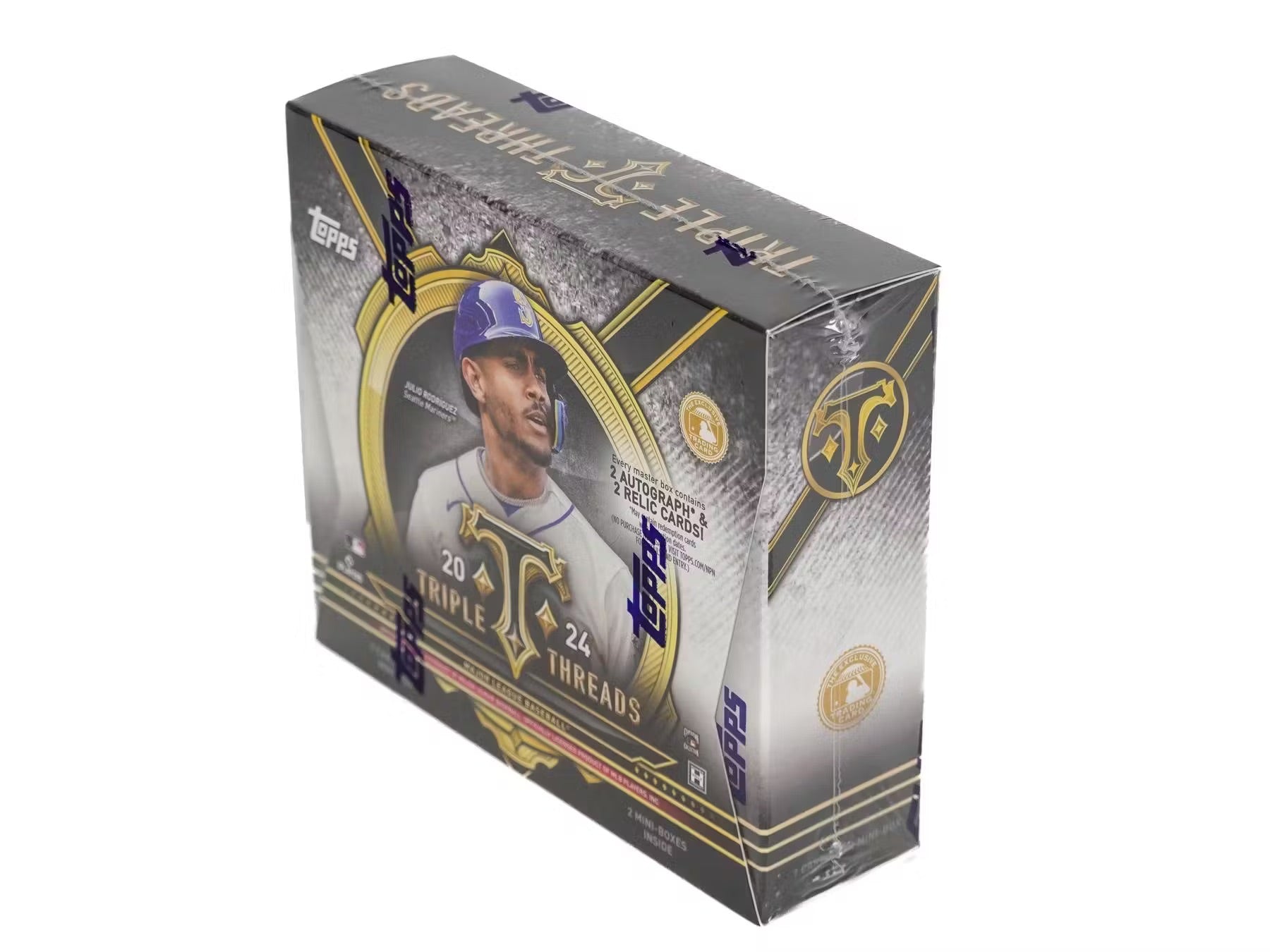 Triple Threads features a variety of autographed relics, autographed rookies, triple relics, jumbo relics and one of a kind 1/1 exclusive relic cards! Like years past the focus is on current stars, top rookies and retired greats on beautifully designed cards! New larger base set for 2024 has been broken up into 3 groups, veterans, rookies and retired. Look for new parallels including Wood and Red White and Blue! Each master box contains 2 autographs, 2 relics, 8 base cards, and 2 base parallels #'d to 199 or less! 7 cards per pack, 2 packs per box.