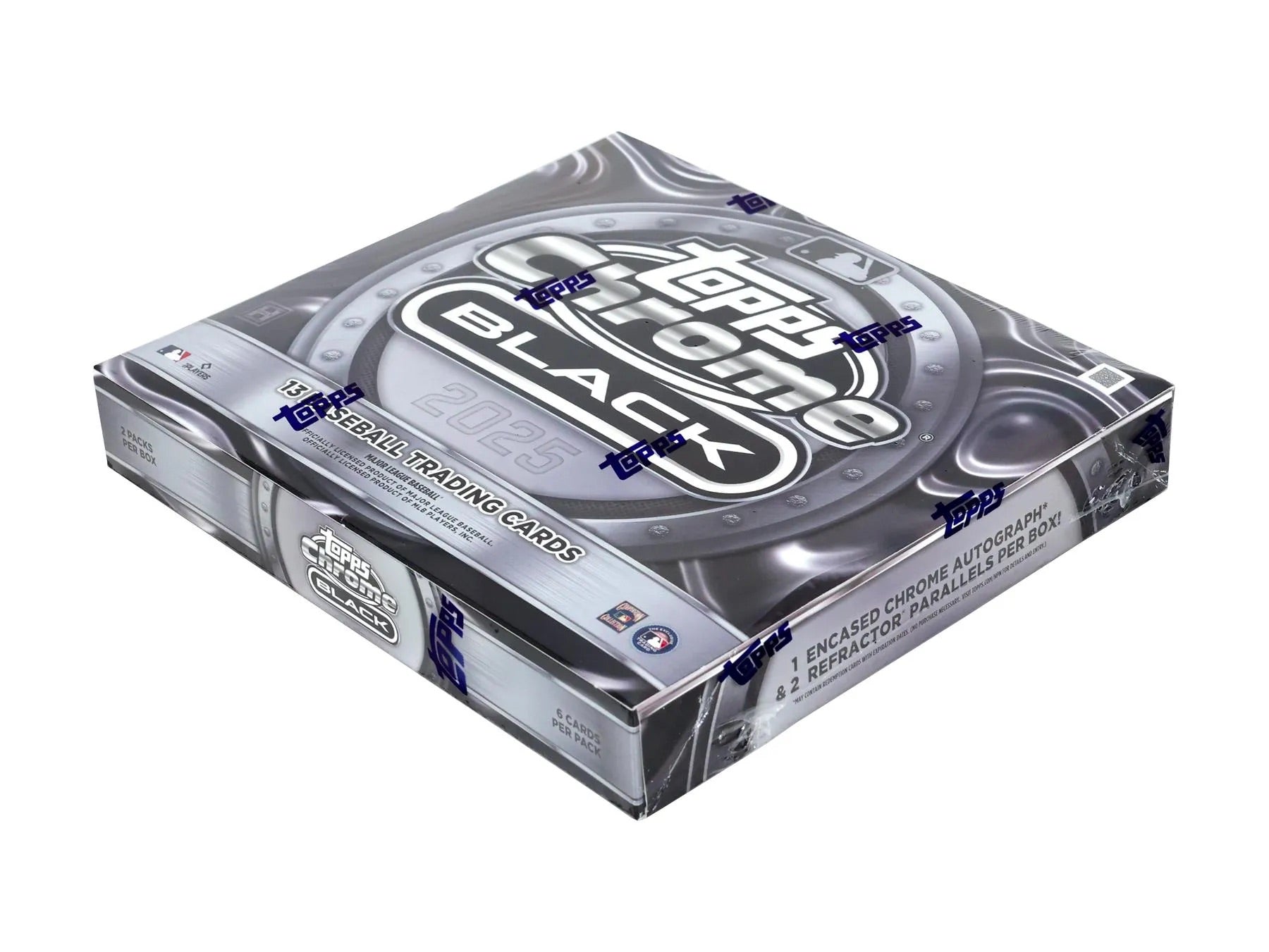 2025 Topps Chrome Black returns with sleek Chrome Black technology and striking on-card autographs! Look for new chase inserts like Hit the Lights and Nocturnal! Collect all 150 Base Set cards featuring the games brightest stars and rookies!